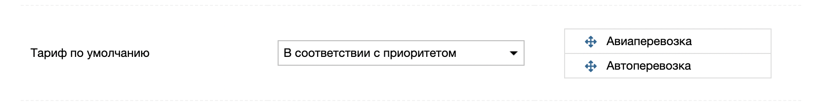 * **В соответствии с приоритетом**. Пользователю предлагается расставить включенные тарифы в порядке приоритета (сверху - самый приоритетный). Приложение будет использовать список приоритета и оформит накладную по первому (считая сверху) доступному тарифу .