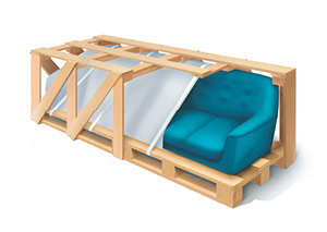 Сочетание деревянной обрешетки и воздушно-пузырьковой пленки. Обеспечивает защиту, амортизацию и фиксацию груза. Используется для защиты хрупких, неупакованных грузов, габариты которых не позволяют вместить их в палетный борт, а также при необходимости доставки упакованного груза до адреса или при заказе перевозки в Калининград.
