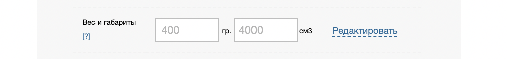 - значений веса и габаритов из карточки товара