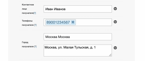В адрес получателя можно передавать данные клиента из: